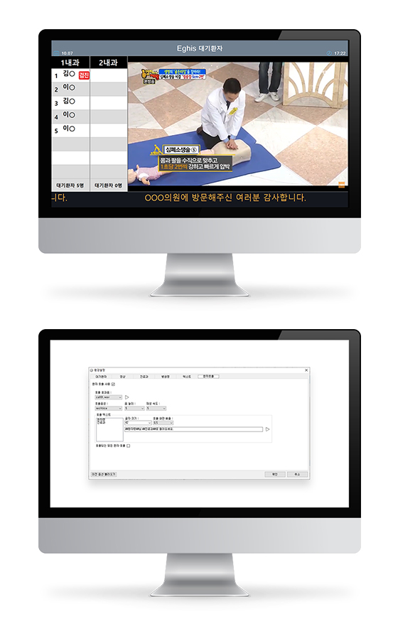 이지스 TV는 원내 대기실의 TV나 모니터 등을 이용하여 환자를 호출하고, 대기시간 동안 환자에게 다양한 미디어 콘텐츠를 제공함으로 대기시간을 효과적으로 활용할 수 있게 해주는